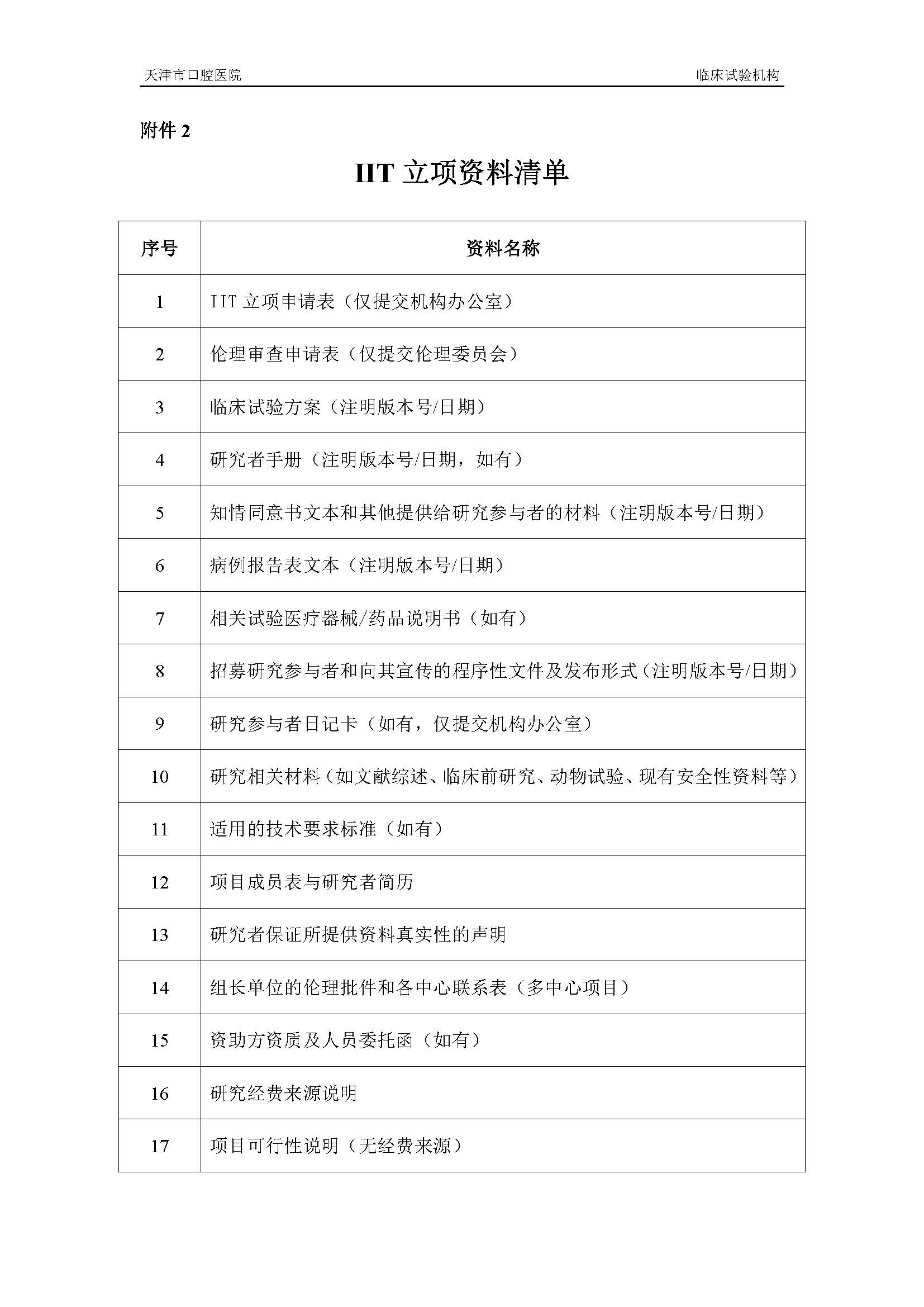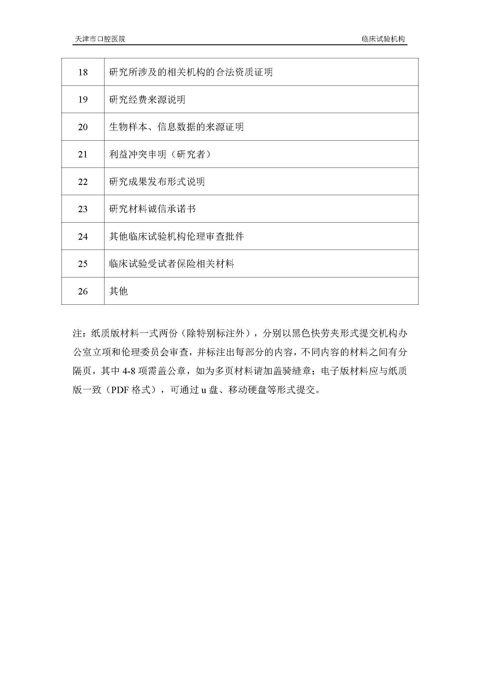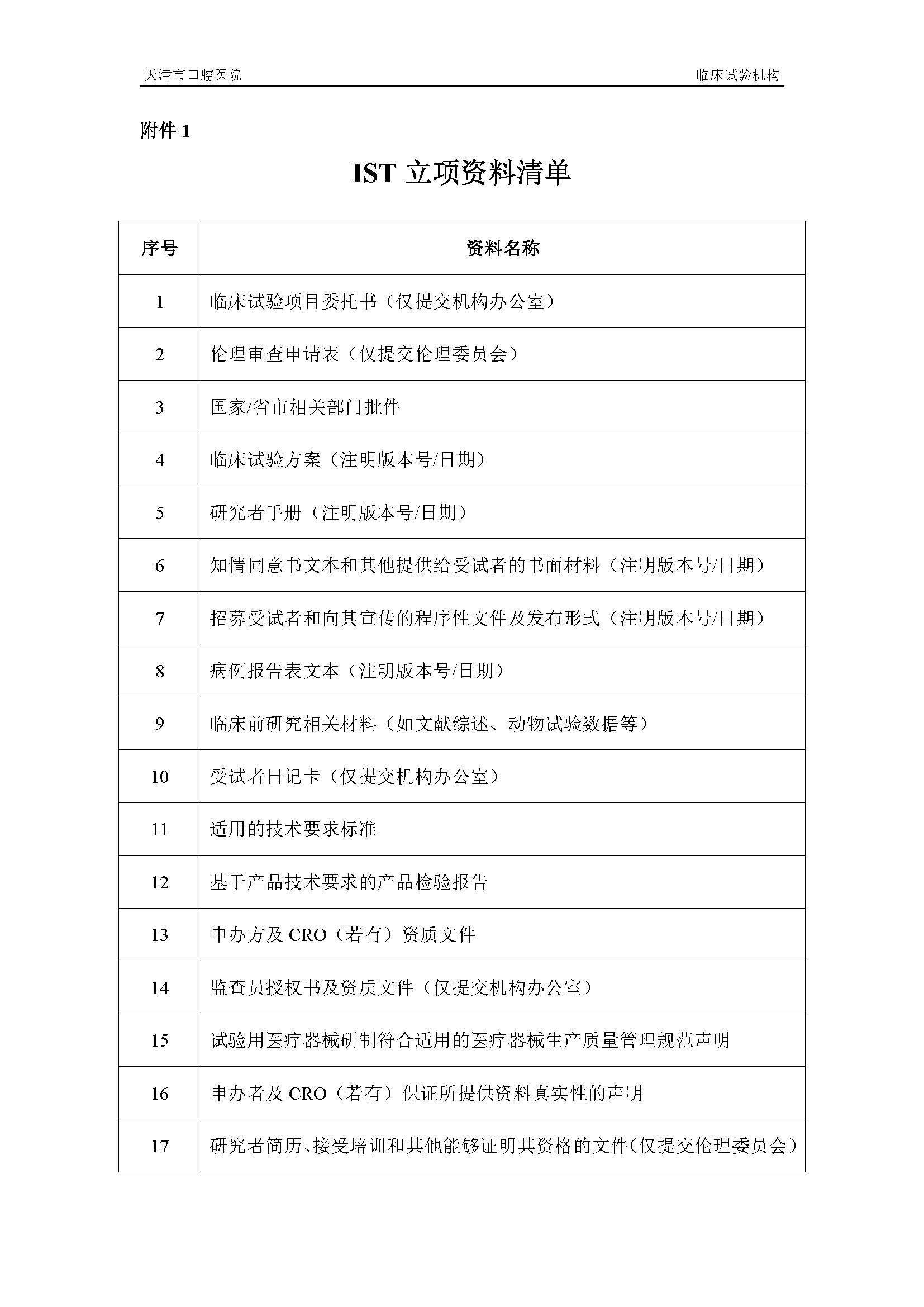 天津市口腔医院医疗器械临床试验立项申请指南